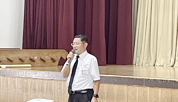 加藤裕二会長よりライオンズクラブについて簡単な紹介をした後、岡山小の先生方による寸劇から始まりました。寸劇では、LINEでのやり取りの中で、「リラックスできるから。頭がスッキリして勉強がはかどるから」などといった、くすりへの誘いを友だち同士で実際にあり得る様な内容をスクリーンに映し出しながらの寸劇でした。
